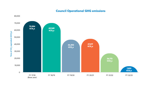 The reduction expected will be measured against the FY 2017/18 base year of Council’s operational greenhouse gas emissions.
